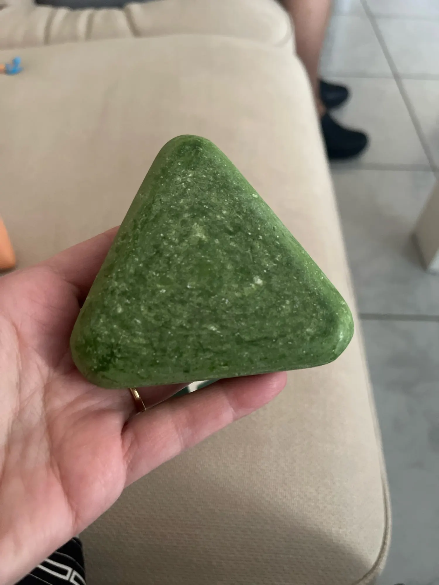 Rub the shampoo bar between hands or directly onto the scalp to create lather.